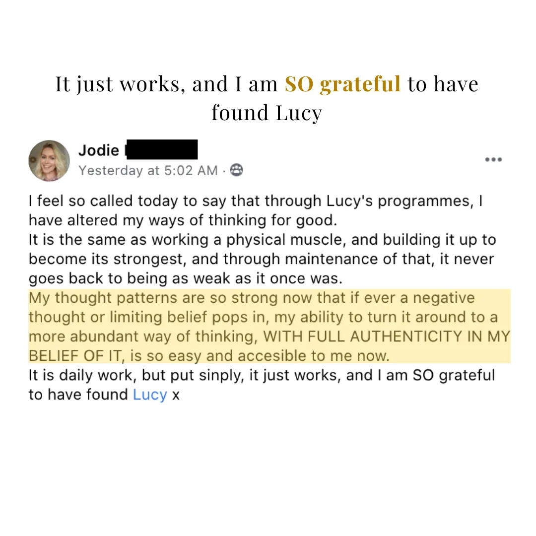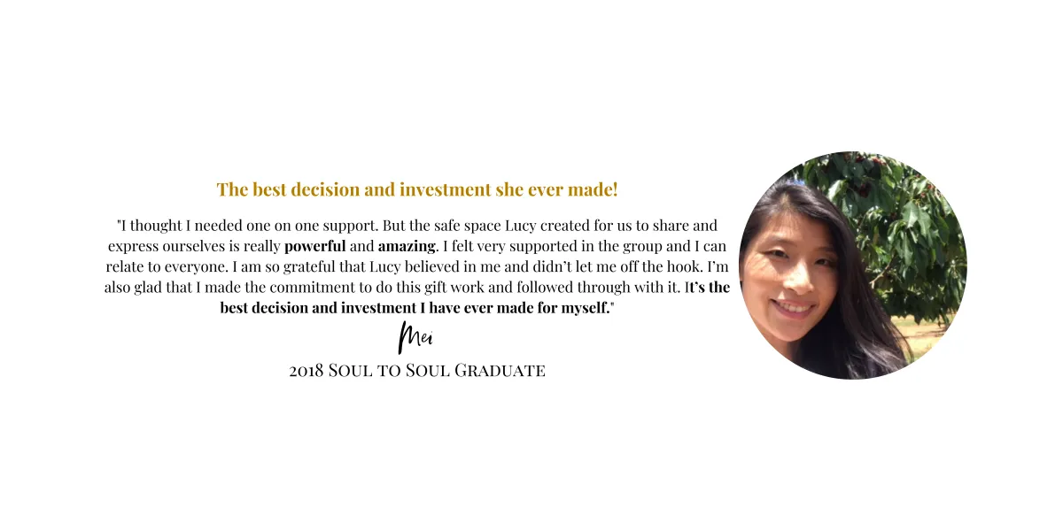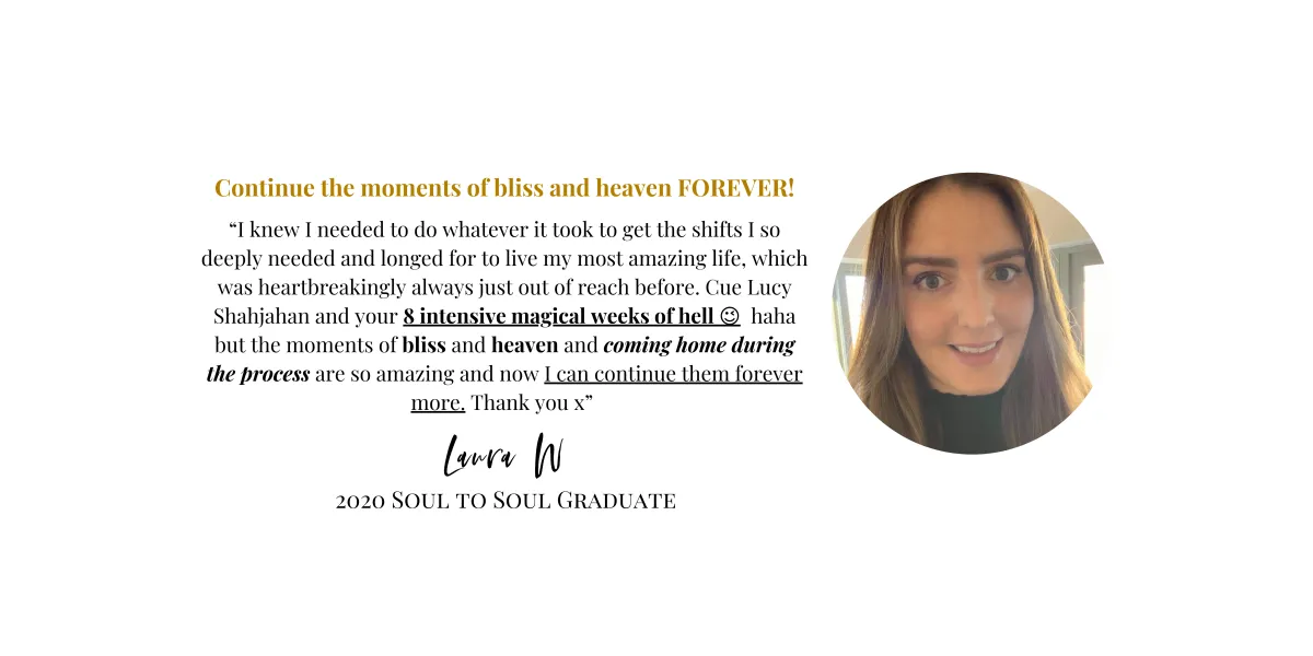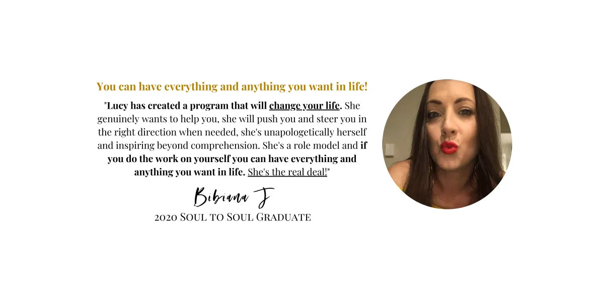 "Lucy is the best friend you want to hold you to your highest, to call you out on your limiting beliefs and old stories that have kept you small and stuck for so long. The Soul to Soul Program is like no other program out there.lIt is all about opening your heart and deeply connecting with who you truly are and